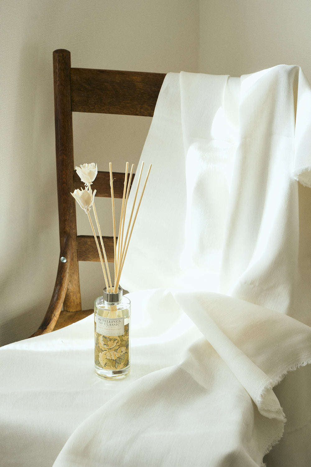 ウィリアム・モリスの世界観をまとった「RETELLINGS OF CLASSIC」ディフューザーリキッドボトルとソラフラワーナチュラルスティックをセットで、通常上代4,400円(税込み4,840円)のところ特別価格2,700円(税込み2,970円)にてご提供いたします!
