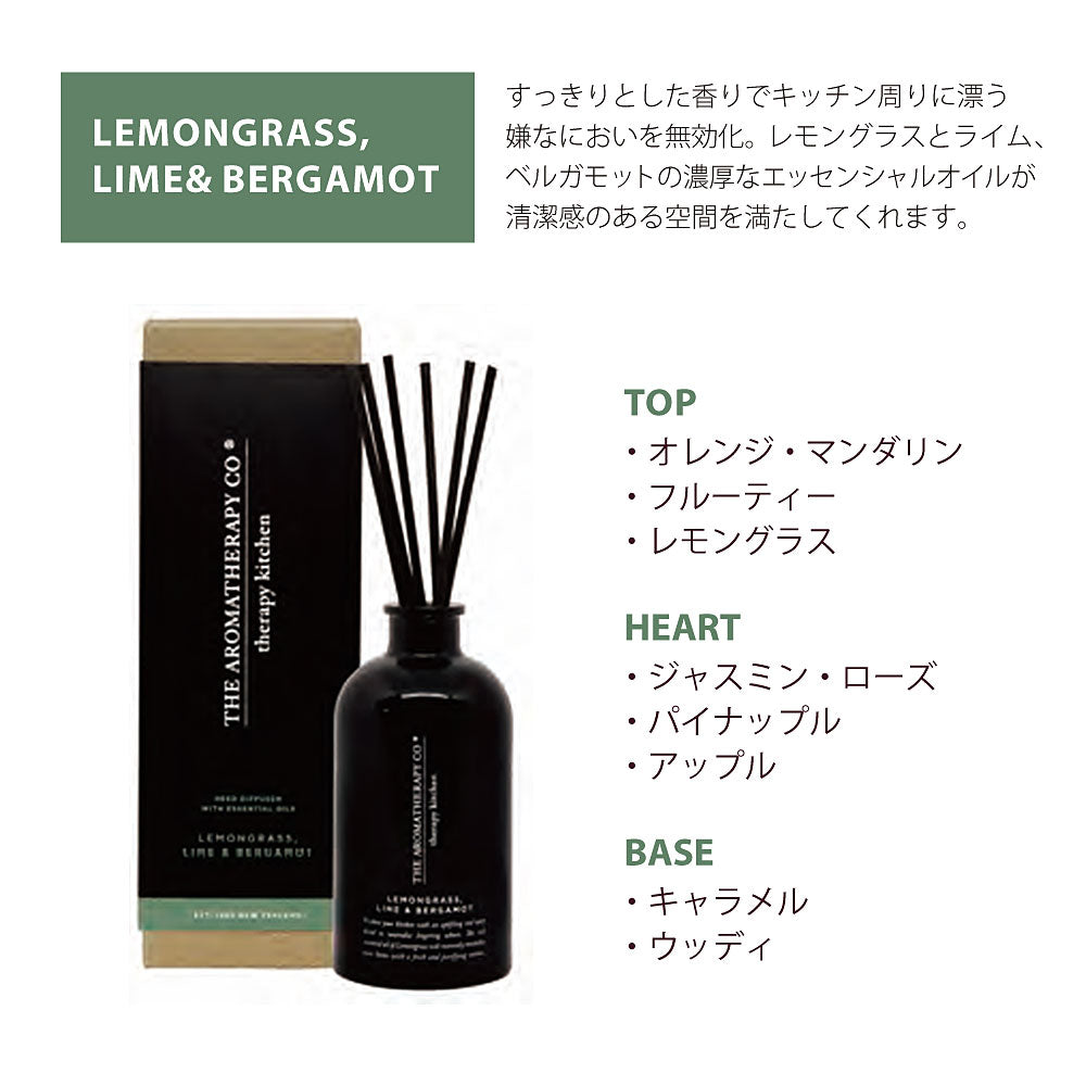 ニュージーランドのアロマセラピーカンパニーが手がけるセラピーレンジは、ボディケアからホームフレグランスまで幅広い商品ラインを展開している シリーズです。100%ピュアなエッセンシャルオイルや植物オイル、植物エキスで香り付けされた商品は健やかなライフスタイルを送るためのパートナー となります。セラピーレンジのユニークな香りのブレンドは、それぞれのテーマに沿って配合されており、キッチンシリーズは台所周りの生臭い臭いや 腐敗臭などを効果的にマスキングしてさっぱりとした香りで包み込む特徴があります。